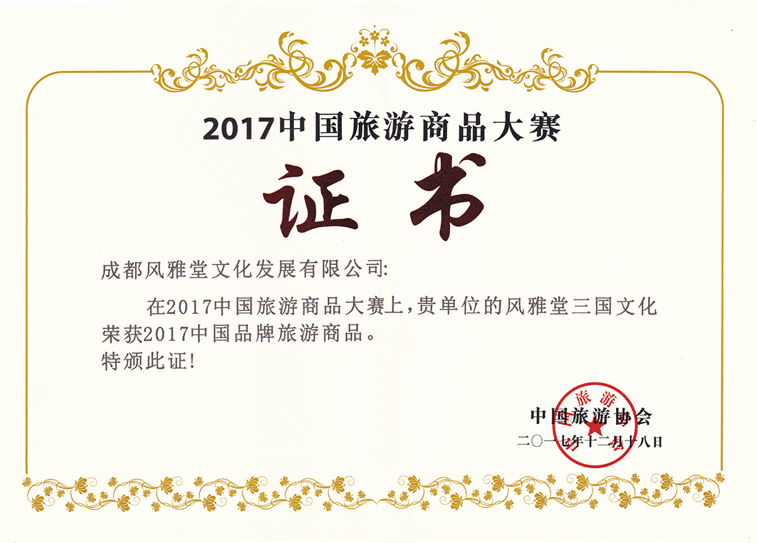在2017中国旅游商品大赛上,我公司参展的《三国文化系列》产品,荣获2017中国品牌旅游商品。...